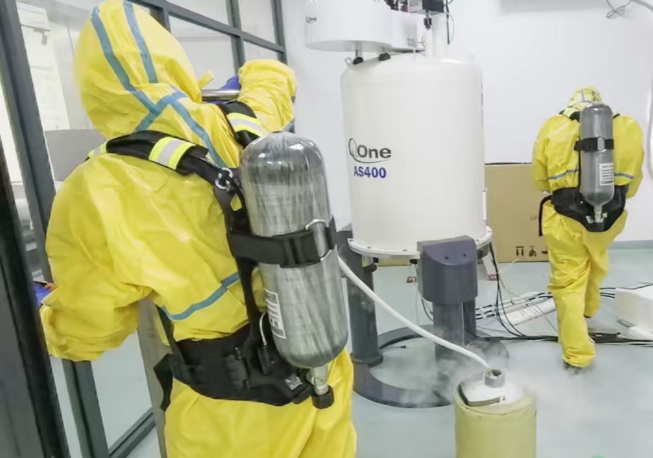 随后,演练总指挥周俊波老师带领各演练小组前往29-312实验室开展实战演练。演练模拟了在核磁共振仪器加注液氮过程中发生泄漏的突发事故。事故发生后,参演人员立即启动应急响应程序:当事人迅速报告事故并撤离,应急小组快速抵达现场处置,疏散小组有序组织人员撤离,安保小组立即设立警戒区域。