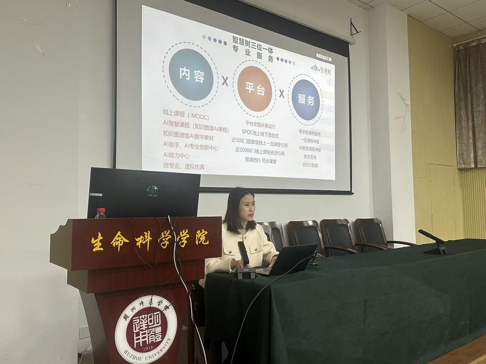 为积极响应教育数字化转型号召,进一步提升教师运用人工智能技术开展教学工作的能力,推动AI与课程建设深度融合,11月12日下午,学院精心组织了主题为“人工智能交叉课程,AI赋能智慧课程建设与共享应用”的专题培训。本次培训特别邀请到智慧树平台的专业工作人员担任主讲,学院全体专任教师参与了此次学习。