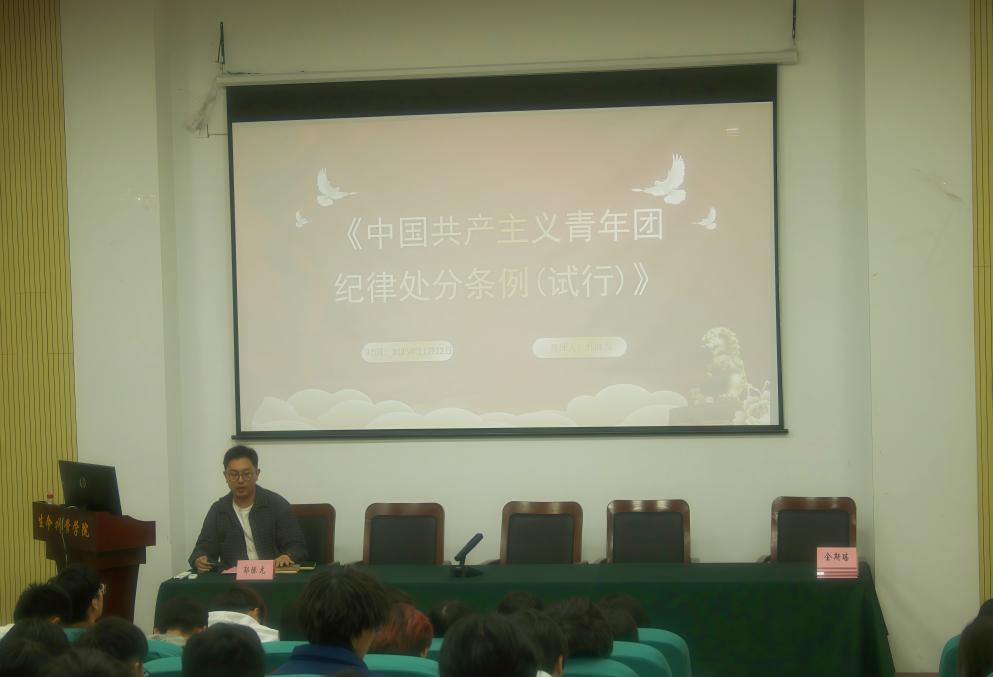 仪式结束后,郭陈龙老师进行了团校第一课,解读了《中国共产主义青年团纪律处分条例(试行)》,并对团校后续学习安排进行部署。他鼓励全体学员以此次团校学习为契机,坚定理想信念、强化责任担当,在思想上、行动上向党组织靠拢,争做有理想、敢担当、能吃苦、肯奋斗的新时代好青年。