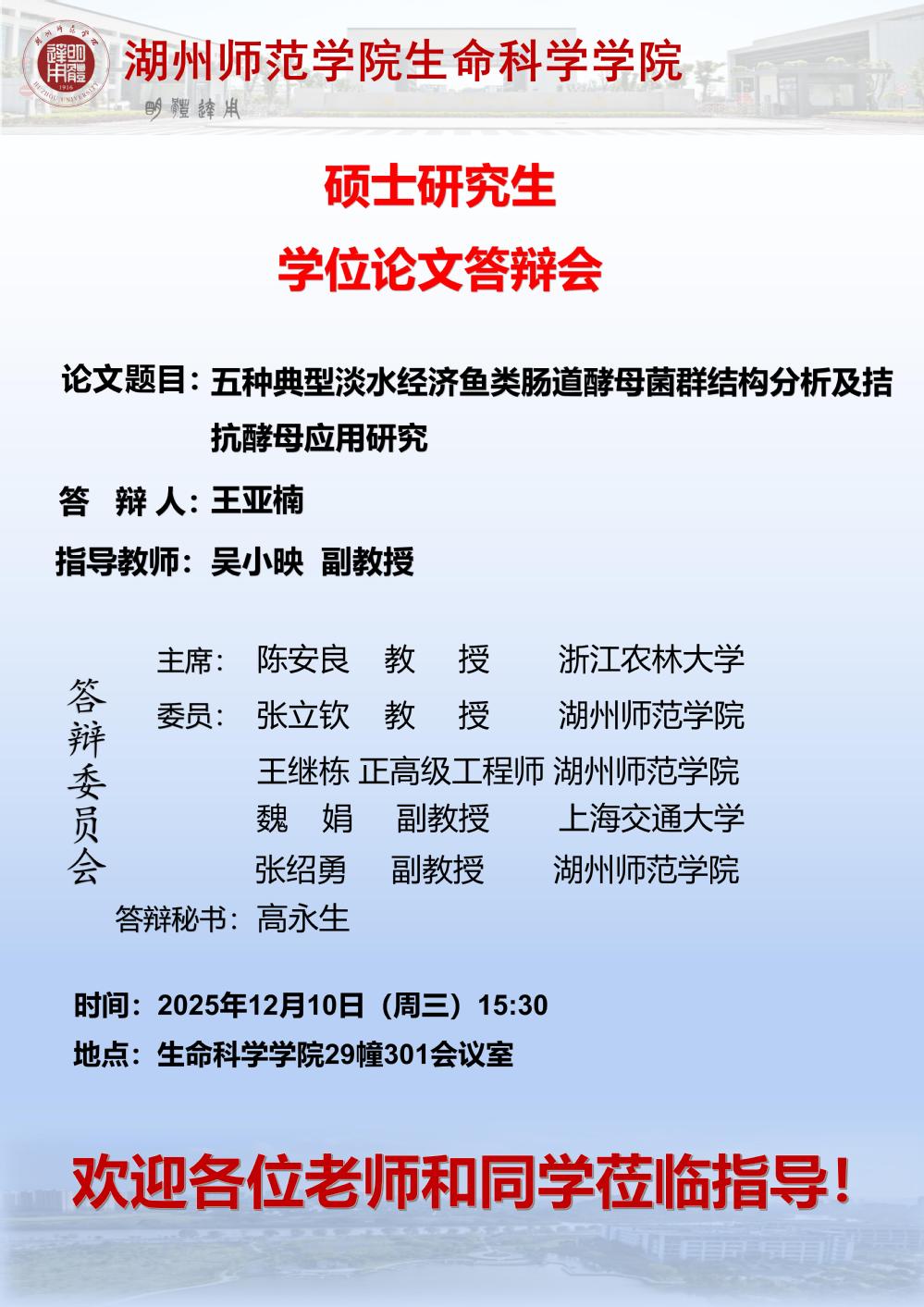 2025年秋季生命科学学院水产一级学科硕士研究生答辩公告