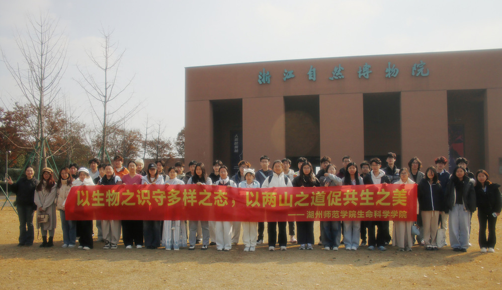 为深化《普通生物学》课程教学改革,引导学生以专业生物知识守护生物多样性、以“两山理念”践行人与自然共生理念,2025年12月3日,湖州师范学院任课教师张鲜朵带领2025级化学(师范)专业本科生,前往浙江自然博物院安吉馆开展沉浸式教学实践活动。此次出行将“以生物之识守多样之态,以两山之道促共生之美”的主题理念融入实地探索,为师范生筑牢生态认知、厚植责任担当。
