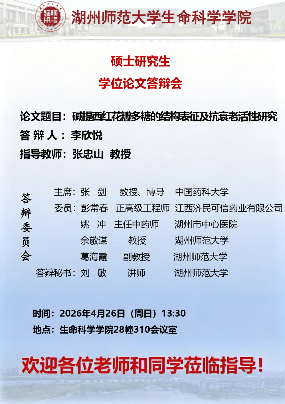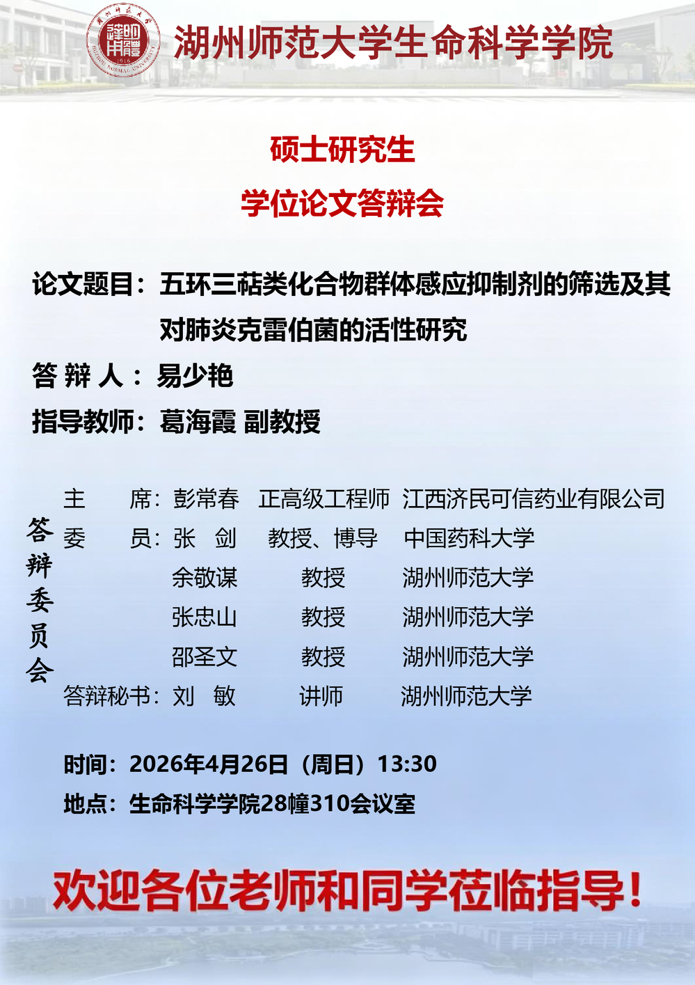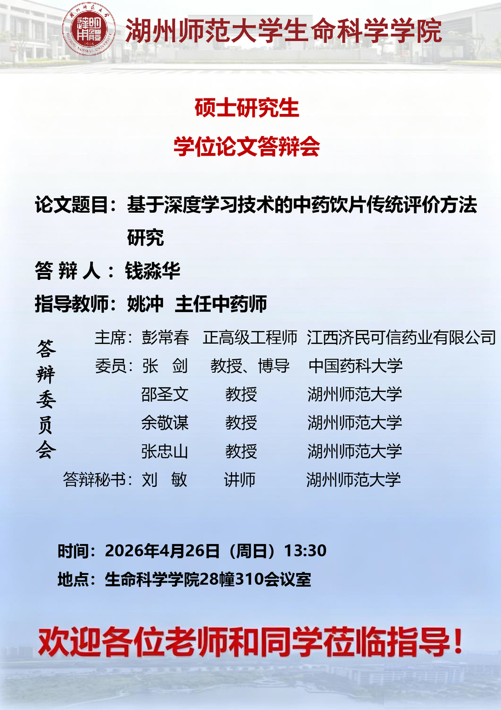 2026年春季生命科学学院生物与医药硕士研究生答辩公告