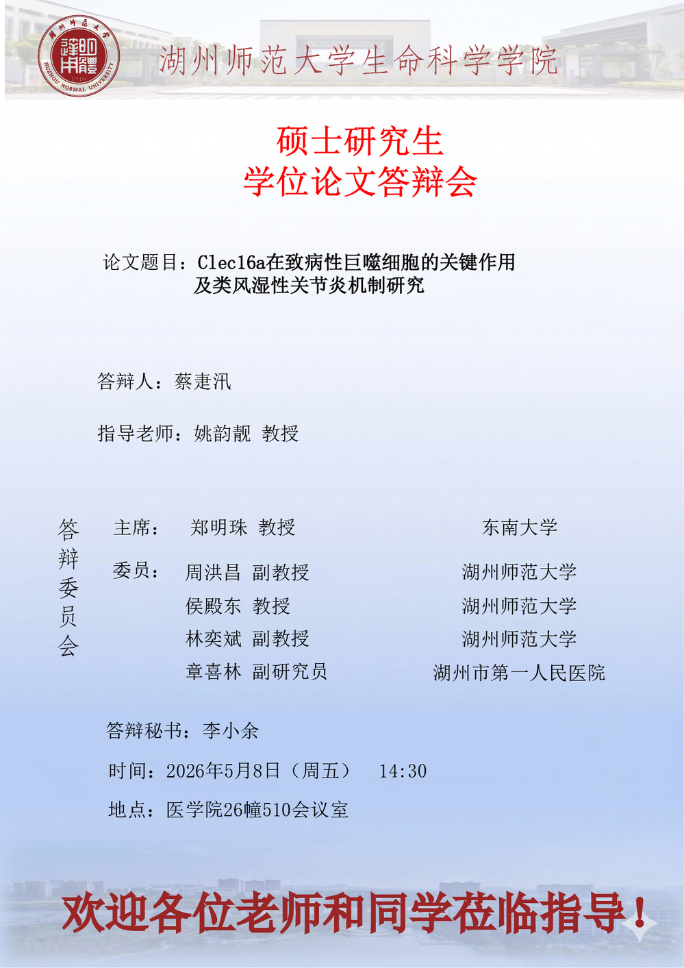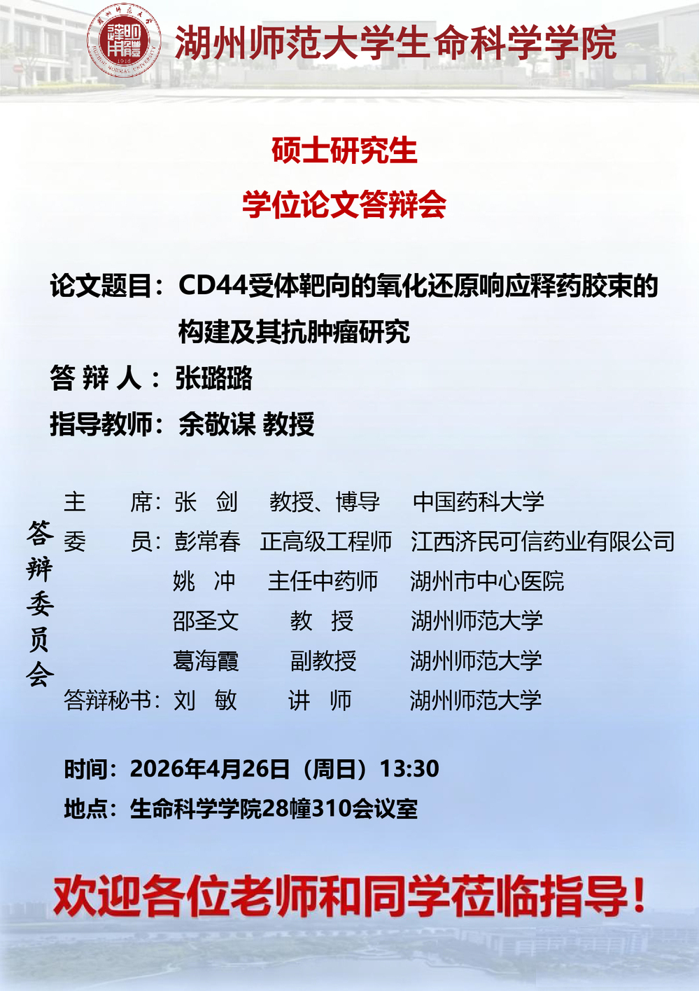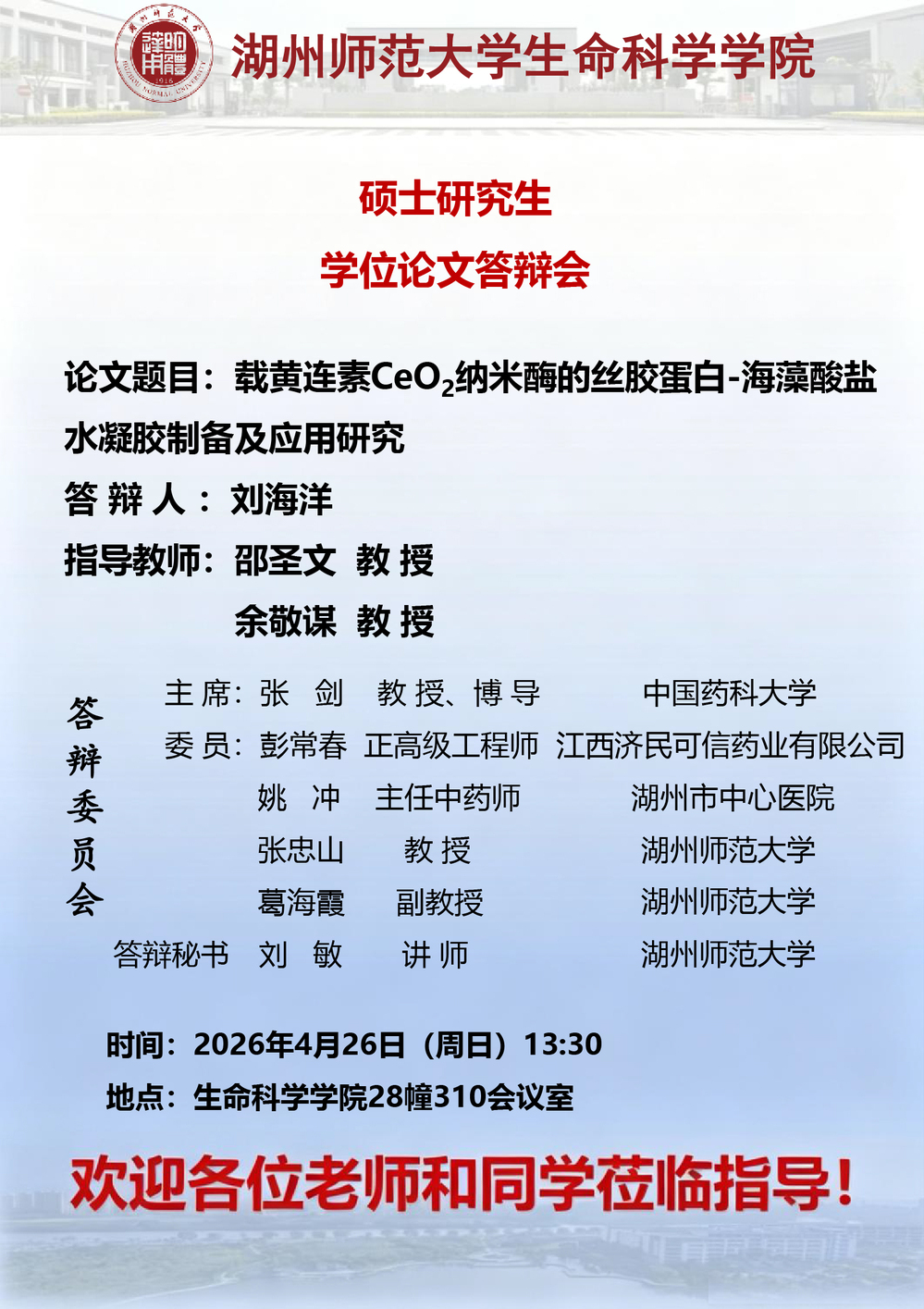 2026年春季生命科学学院生物与医药硕士研究生答辩公告